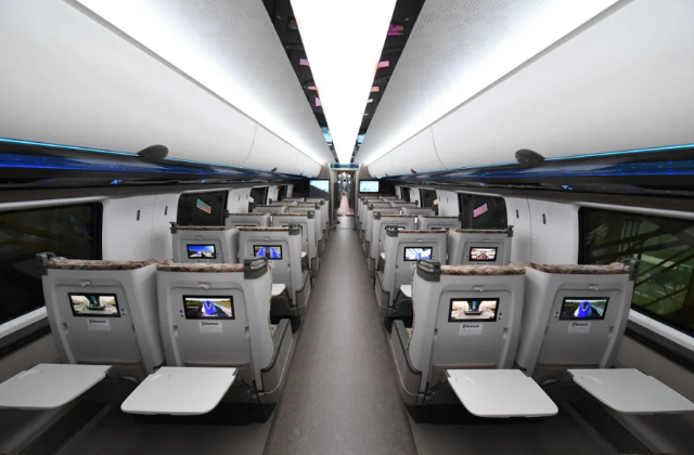 此外,這次下線的高速磁浮采用“車抱軌”的運(yùn)行結(jié)構(gòu),安全可靠。牽引供電系統(tǒng)布置在地面,隨列車位置分段供電,相鄰分區(qū)只有一列車運(yùn)行,基本沒有追尾風(fēng)險(xiǎn)。實(shí)現(xiàn)GOA3級(jí)全自動(dòng)運(yùn)行,系統(tǒng)安全防護(hù)滿足SIL4最高安全等級(jí)要求。單節(jié)載客量可超過百人,并可在2到10輛范圍內(nèi)靈活編組,滿足不同載客量需求。行駛中不與軌道發(fā)生接觸,無輪軌磨耗,維護(hù)量少,大修周期長,全壽命周期經(jīng)濟(jì)性好。
