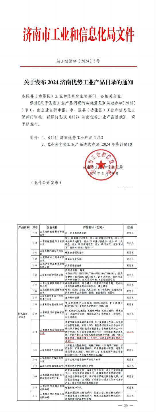 根據(jù)濟(jì)南市工信局發(fā)布“2024年濟(jì)南市優(yōu)勢工業(yè)產(chǎn)品目錄”文件,朗進(jìn)科技三個(gè)項(xiàng)目列入2024濟(jì)南優(yōu)勢工業(yè)產(chǎn)品。這一成就不僅彰顯了公司在工業(yè)領(lǐng)域的卓越實(shí)力,也進(jìn)一步體現(xiàn)了我們不斷追求創(chuàng)新和卓越的精神。